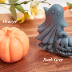– orange pumpkin and dark grey ghost