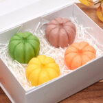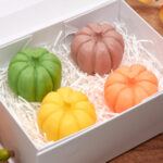 A special set of four colourful and fragrant pumpkins, handmade from a high-quality soap base enriched with organic shea butter.